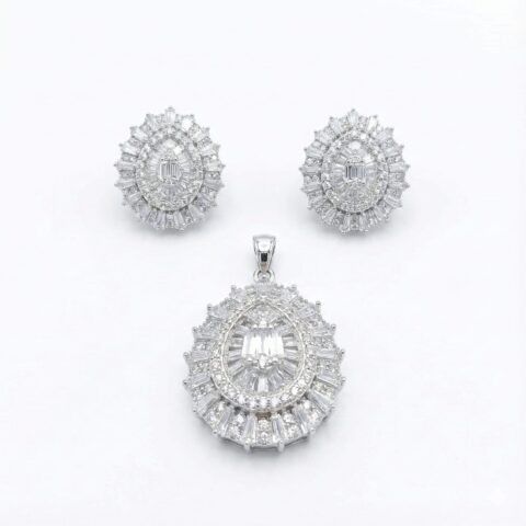 Sterling Silver 925 Oval Baguette CZ Pendant & Earring Set